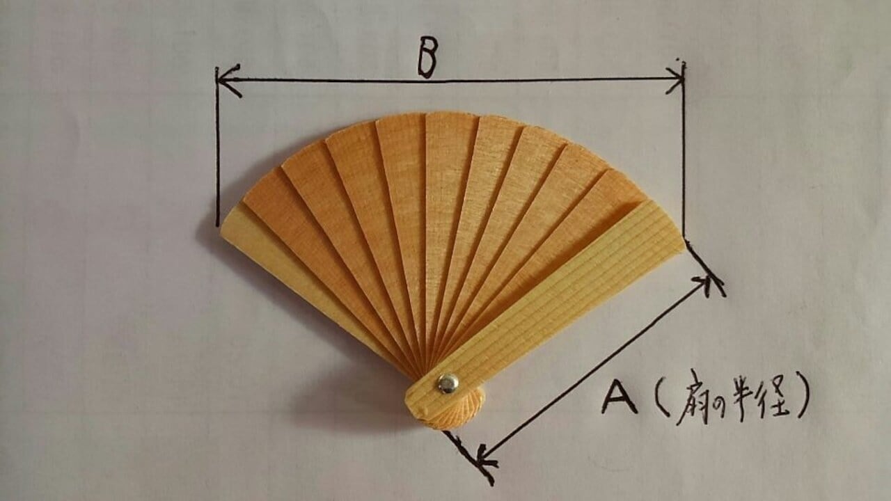 【サイズ】扇の半径(A)が3cm (B)…約4.5cm